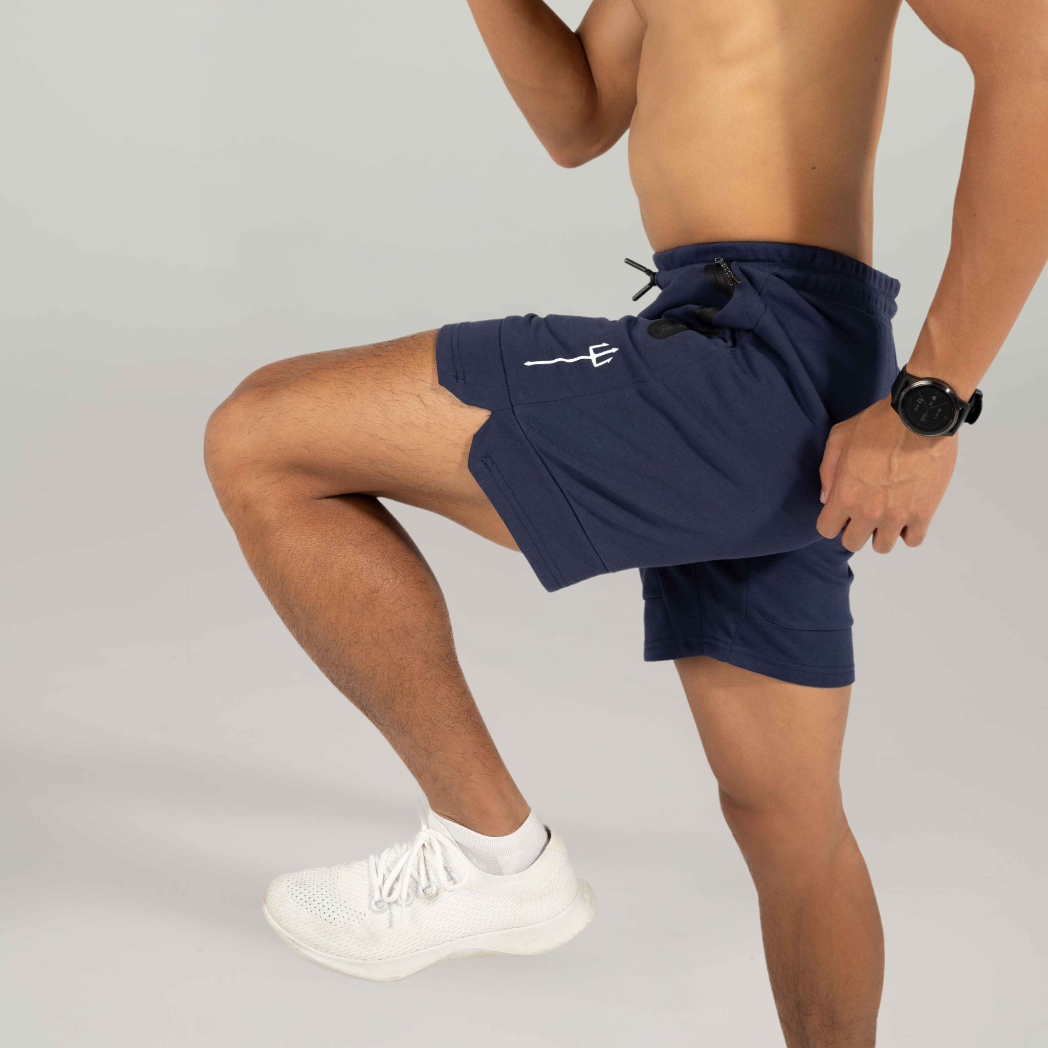 • Model is wearing a size XL for Black and M for Navy Blue & Grey shorts
