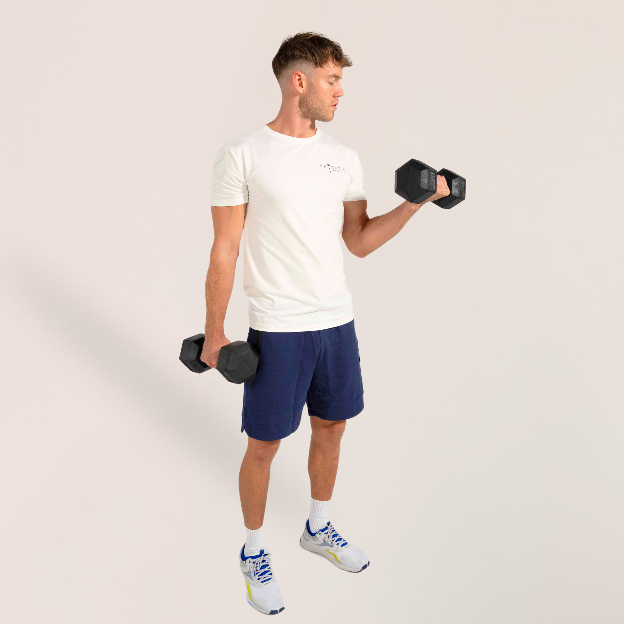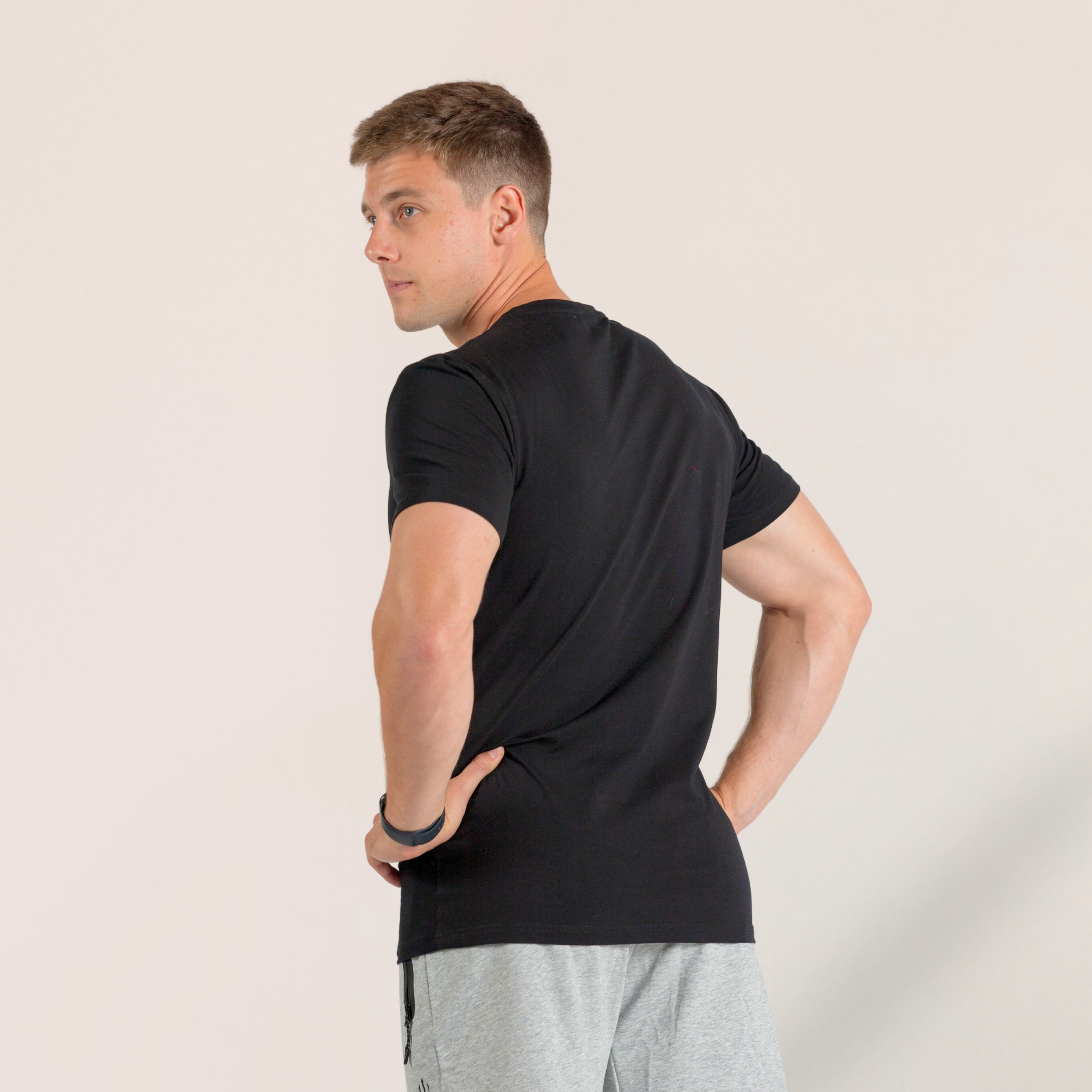 Our Muscle Fit T-Shirt is a blend of cotton and elastane. Despite the fabric hugging the body tightly, it’s stretchy ability helps mould it to different body compositions. Light fabric, simplistic design, performance ready.
